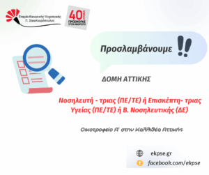 ΠΡΟΣΚΛΗΣΗ ΕΚΔΗΛΩΣΗΣ ΕΝΔΙΑΦΕΡΟΝΤΟΣ ΓΙΑ ΚΑΛΥΨΗ ΘΕΣΕΩΝ ΕΡΓΑΣΙΑΣ ΣΤΟ Α’ ΟΙΚΟΤΡΟΦΕΙΟ ΑΤΤΙΚΗΣ