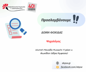 ΠΡΟΣΚΛΗΣΗ ΕΚΔΗΛΩΣΗΣ ΕΝΔΙΑΦΕΡΟΝΤΟΣ ΓΙΑ ΥΠΟΒΟΛH ΑΙTΗΣΕΩΝ ΓΙΑ ΘΕΣΗ ΕΡΓΑΣΙΑΣ ΨΥΧΟΛΟΓΟΥ ΣΤΗ ΔΟΜΗ ΦΩΚΙΔΑΣ, ΚΙΝΗΤΗ ΜΟΝΑΔΑ ΨΥΧΙΚΗΣ ΥΓΕΙΑΣ Ν.ΦΩΚΙΔΑΣ – ΑΜΦΙΣΣΑ