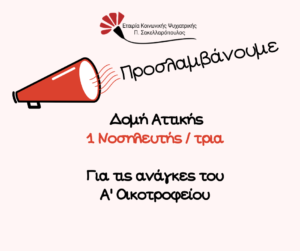 Η Εταιρία Κοινωνικής Ψυχιατρικής Π.Σακελλαρόπουλος ενδιαφέρεται να προσλάβει έναν/μία (1) εργαζόμενο/η νοσηλευτή/τρια ΠΕ/ΤΕ /ΔΕ για την [...]