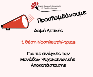 Δομή Αττικής: Πρόσκληση εκδήλωσης ενδιαφέροντος για μία θέση νοσηλευτή/-τριας