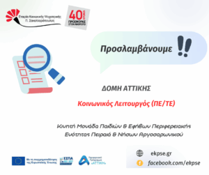 ΠΡΟΣΚΛΗΣΗ ΕΚΔΗΛΩΣΗΣ ΕΝΔΙΑΦΕΡΟΝΤΟΣ ΓΙΑ ΚΑΛΥΨΗ ΘΕΣΗΣ ΕΡΓΑΣΙΑΣ ΣΤΗΝ ΚΙΝΗΤΗ ΜΟΝΑΔΑ ΠΑΙΔΙΩΝ & ΕΦΗΒΩΝ ΠΕΡΙΦΕΡΕΙΑΚΗΣ ΕΝΟΤΗΤΑΣ ΠΕΙΡΑΙΑ & ΝΗΣΩΝ ΑΡΓΟΣΑΡΩΝΙΚΟΥ