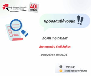 Πρόσκληση εκδήλωσης ενδιαφέροντος για υποβολή αιτήσεων για θέση εργασίας Διοικητικού Υπαλλήλου στη Δομή Φθιώτιδας