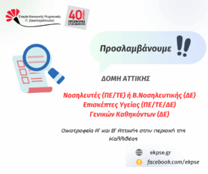 ΠΡΟΣΚΛΗΣΗ ΕΚΔΗΛΩΣΗΣ ΕΝΔΙΑΦΕΡΟΝΤΟΣ ΓΙΑ ΚΑΛΥΨΗ ΘΕΣΕΩΝ ΕΡΓΑΣΙΑΣ ΣΤΟ Α’ ΟΙΚΟΤΡΟΦΕΙΟ ΑΤΤΙΚΗΣ